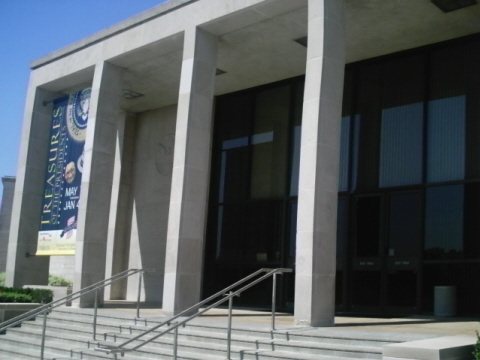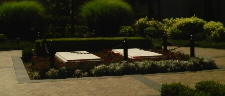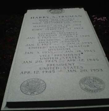 Harry S. Truman, 1948 and 1970 | Truman is buried in Independence, Missouri in the courtyard of the Harry S. Truman Presidential Museum and Library. I visited there on July 7, 2007. After visiting two sites in Topeka, we made the hour trip to Independence. First, we visited the Museum and Library where we saw the grave. Then we went a few blocks to the home. It was late in the day, and we missed the last tour, so were not able to tour the home. This was the last gravesite of the trip. For the whole trip, we visited 6 presidential graves, 2 V-P (not include the 3 that were also president), 1 Presidential loser and 1 V-P loser. We traveled over 4500 miles through 15 states. It was a long trip, but well worth it. After the visit, I now have only one more presidential grave!