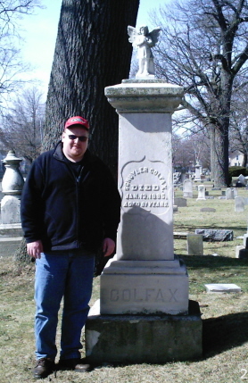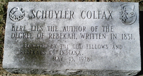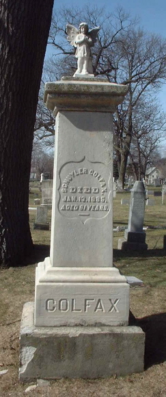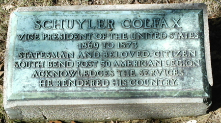| Colfax is buried in the City Cemetery, South Bend, Indiana.The location of his grave is easy to find. Go through the main gate, take the first left, and its right on the right side. | ||