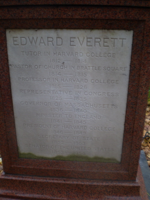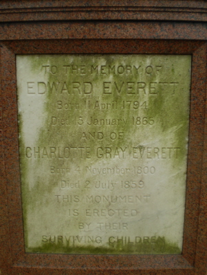 Edward Everett Everett was on the Constitutional Union Party ticket in 1860 with John Bell. He is buried in Mount Auburn Cemetery, Cambridge, Mass. Date of Visit: November 15, 2008 |