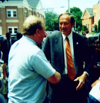 The day I met the Governor. Sort of. My first reaction to him is that I was surprised at how tall he is. I am six - one, and he is easily 3 or 4 inches taller then me. He was in Batavia for the day, and I positioned myself near the front with some friends of mine that are more prominent in the community then me, and he breezed right by me as he was shaking my hand, and my friend was able to snap this picture with my camera. |