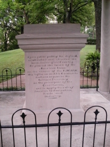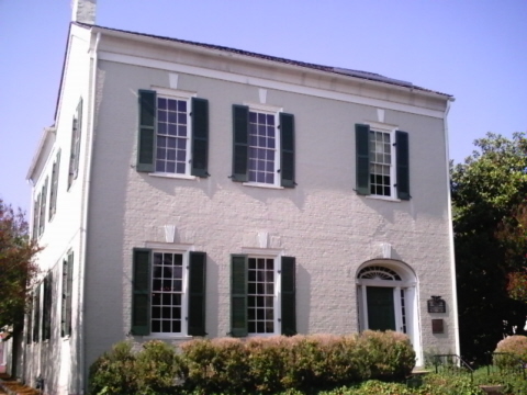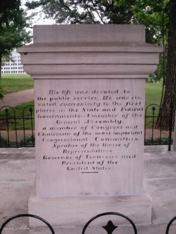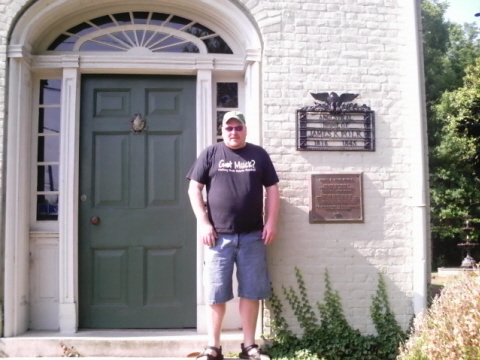 Polk is buried on the grounds of the State Capitol Building in Nashville, Tennessee. After going to the Hermitage, we went west about 20 miles to Nashville. We found the State Capitol Building easy enough, but we had to go around the block a couple of times to navigate through the one way streets. Fortunately, it was Friday, after 5:00 p.m., so we had no trouble finding a parking spot. Polk, and the Capitol, are at the top of a hill. We climbed the steps and found the tomb. When we got there, there was a couple other people taking pictures too. With this grave visit it left me with four to go and I finally passed Manus Hand. Hand is the first person I know of to build a website dedicated to Presidential Grave Hunting. I never thought of taking pictures until I saw his site. Check out his site here. After the visit it was off to find a hotel. We stayed in Columbia and the next morning went to visit the Ancestral Home. Its a must visit site. We were greeted there by the director, John, and we found out we have a mutual friend.
